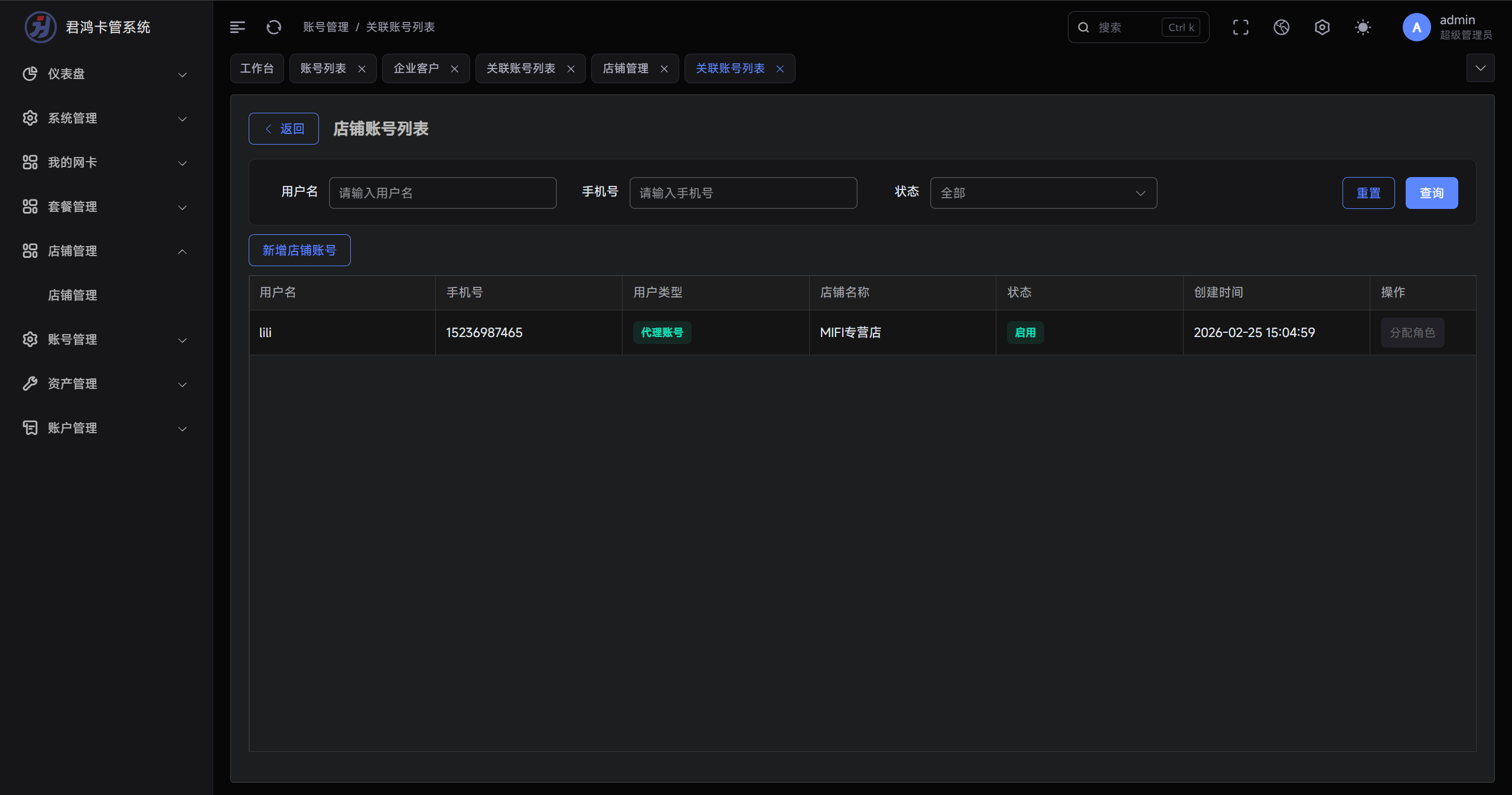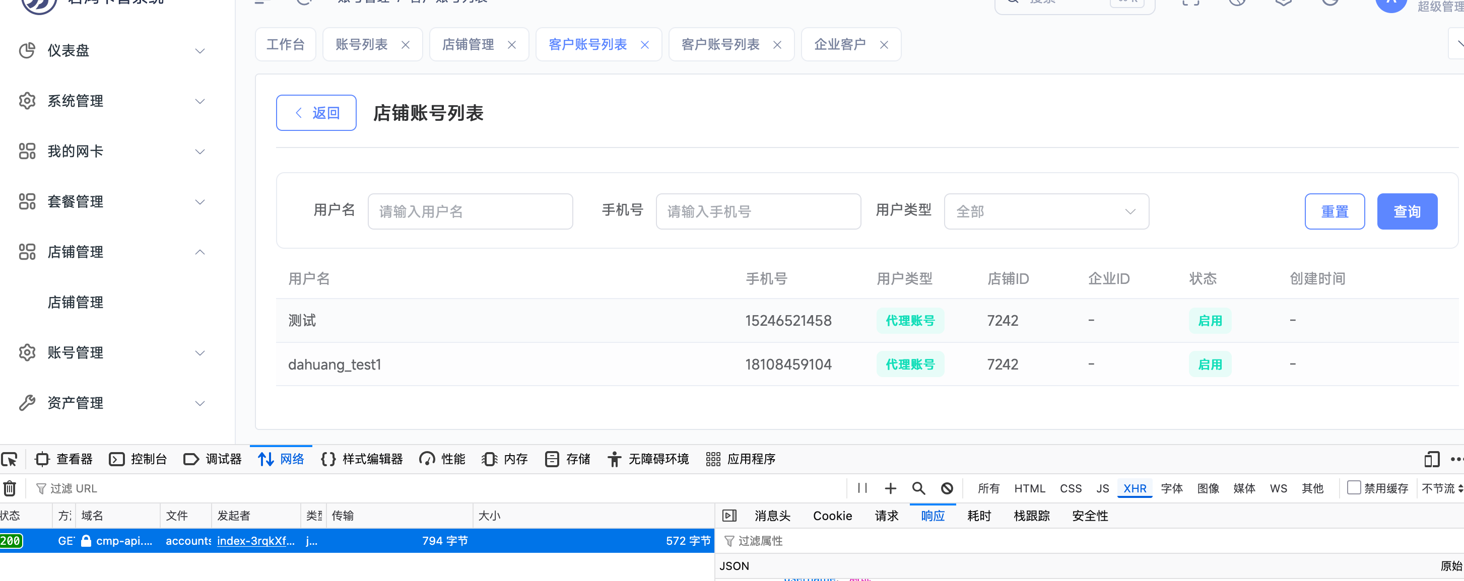 店铺管理中的账号列表展示字段问题 #14