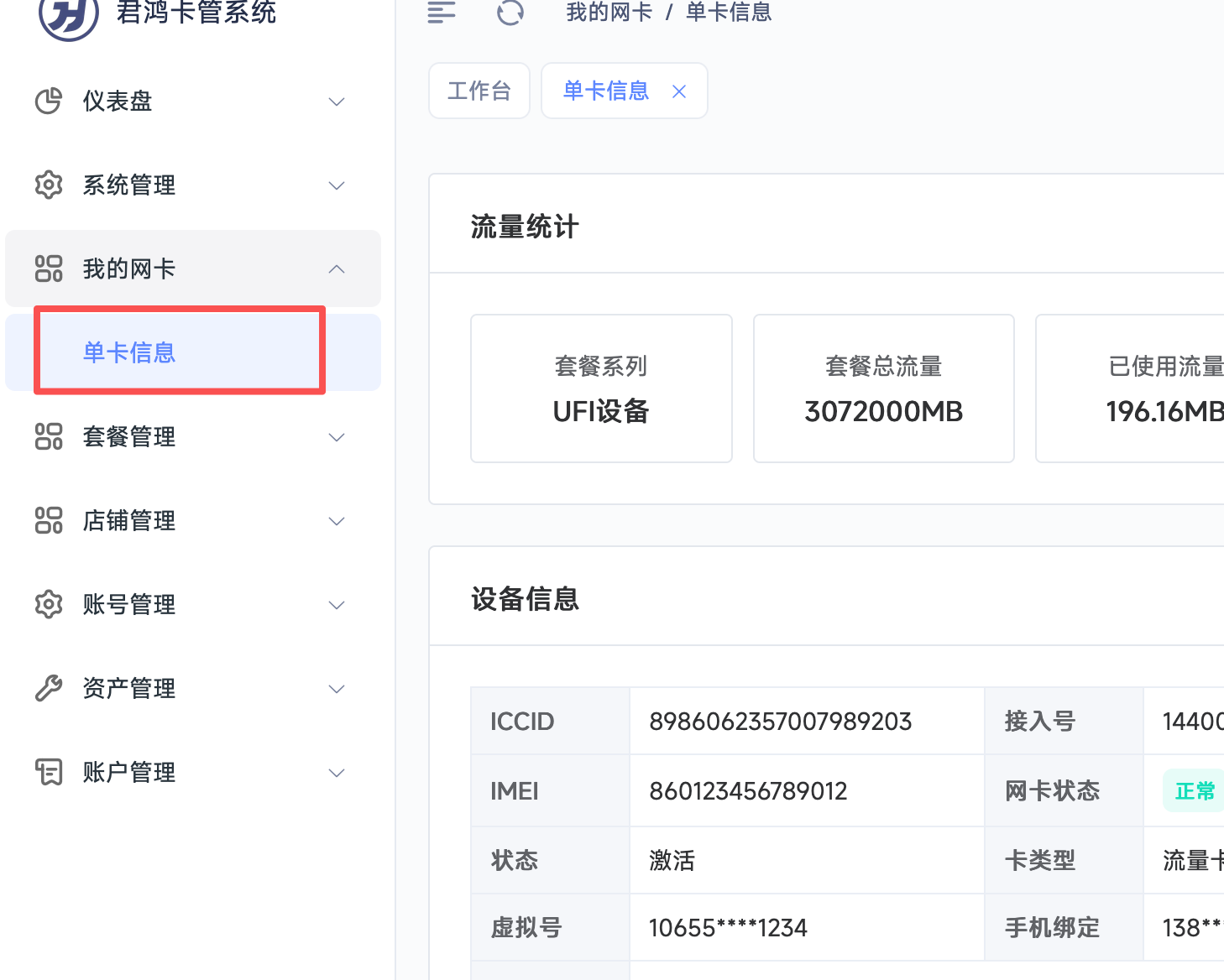 单卡信息应当放到资产管理里面,同时现在的单卡信息没有提供直接通过iccid查出信息的功能 #17