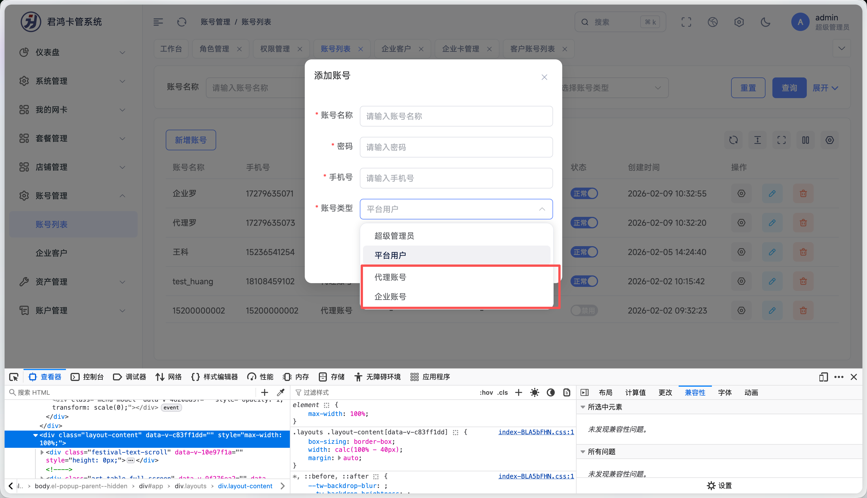 账号列表中的新增账号去除一些选项 #9